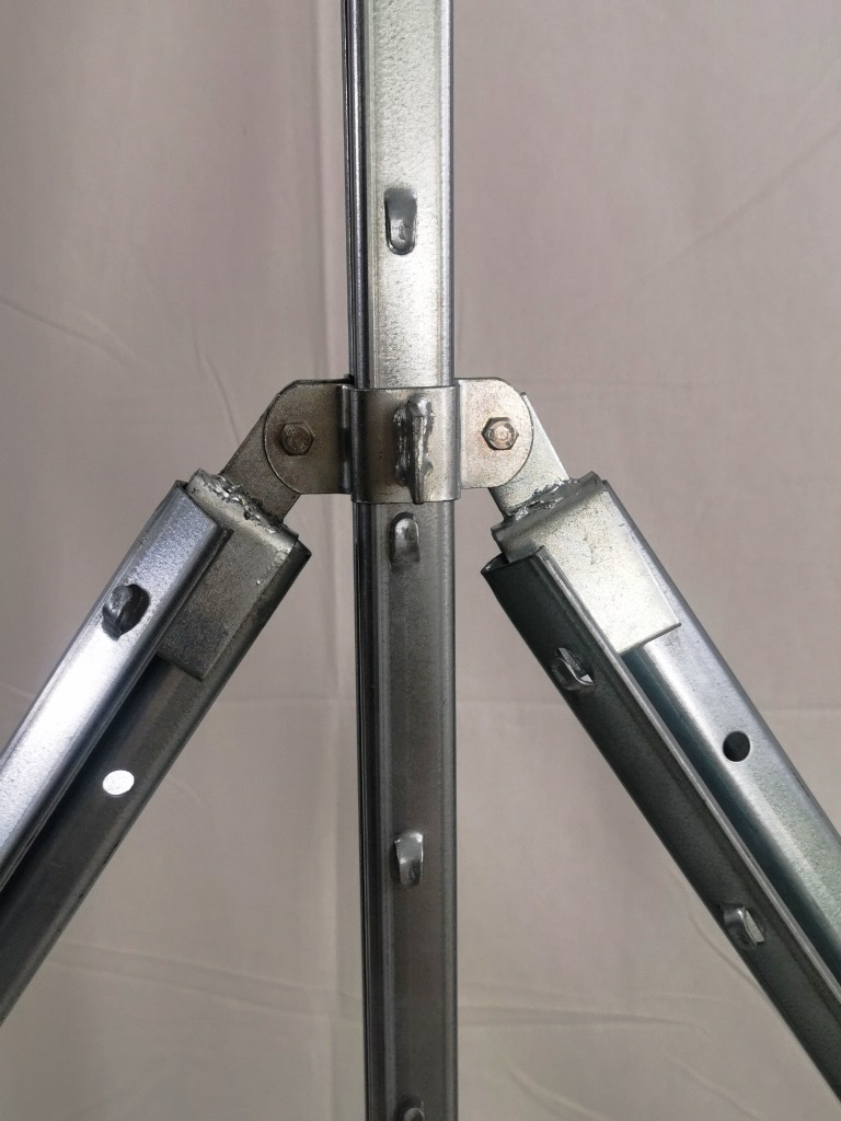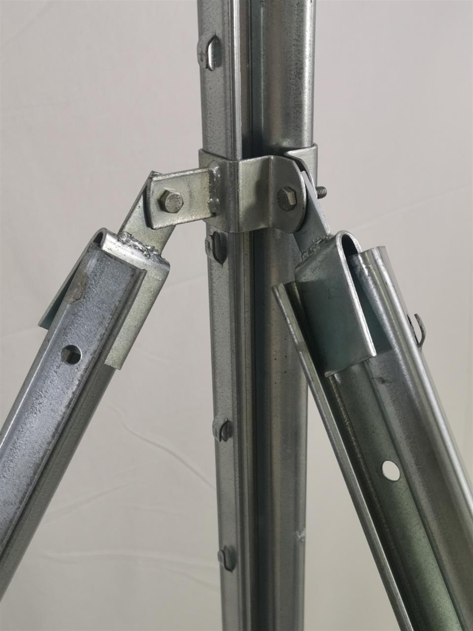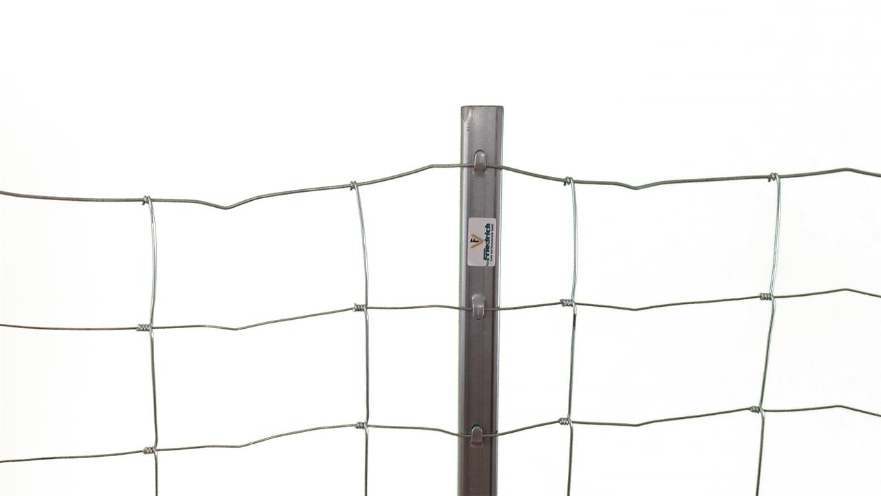 Im Abstand von 10 cm sind Haken zum Einhängen des Geflechts herausgestanzt. Durch das wechselseitige Einhängen des Geflechts wird die Montage wesentlich erleichtert und das Aushängen durch Wild verhindert. Die Starkverzinkung und die Materialstärke von 1,5 mm gewährleisten lange Standzeiten und die Wiederverwendbarkeit der Pfähle.